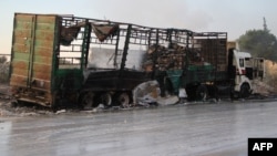 При авианалете были уничтожены 18 грузовиков совместного конвоя ООН и Сирийского Красного полумесяца. Груз предназначался для города Ерем аль-Кубра, который находится к западу от Алеппо.