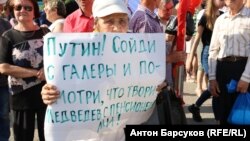 На акции звучали лозунги: "Нет пенсионной реформе", "Правительство Медведева в отставку", "И Путина тоже!".