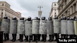Сотрудники силовых структур наблюдают за протестами в Минске 6 сентября