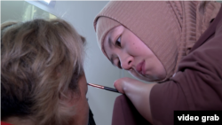 Сейчас девушка учится делать профессиональный макияж. Ее наставница говорит, что все получается. "Она очень старательная, хотя у нее нет одной руки, а ко второй руке, на которой нет кисти, она привязывает кисточку и красит. Она хочет работать, – рассказывает Роза Бегалиева. – А вообще у нас очень много людей с ограниченными возможностями, которые не хотят трудиться и ждут помощи от спонсоров".