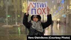 Олейникову задержали во время пикета у здания ФСБ, где она стояла с плакатом "Лутин Пох". Когда ее привезли в отдел полиции "Китай-город", ей, по ее словам, "выломали палец", а также били по рукам и заламывали их.