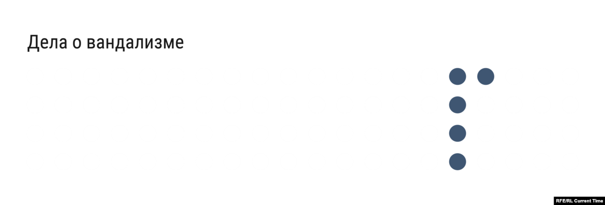 По статье "Хулиганство" по всей России было заведено пять дел. Одно из них – в Краснодаре, в отношении 17-летнего подростка, который оголил ягодицы на памятнике Кубанскому казачеству. Другое дело в Москве завели в отношении тиктокера Кости Киевского за то, что во время протестов он остановил машину на проезжей части и распылил газовый баллон. Машина принадлежала одному из силовых ведомств России.