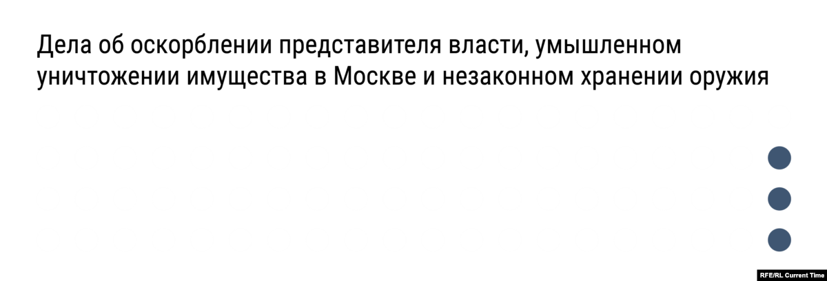 Также есть дела об оскорблении представителя власти в Санкт-Петербурге и об умышленном уничтожении имущества в Москве. Кроме того, заведено дело о незаконном хранении оружия в Пскове в отношении мужчины, который уже проходит подозреваемым в делах о нападении на полицейского и призывах к экстремистской деятельности.
